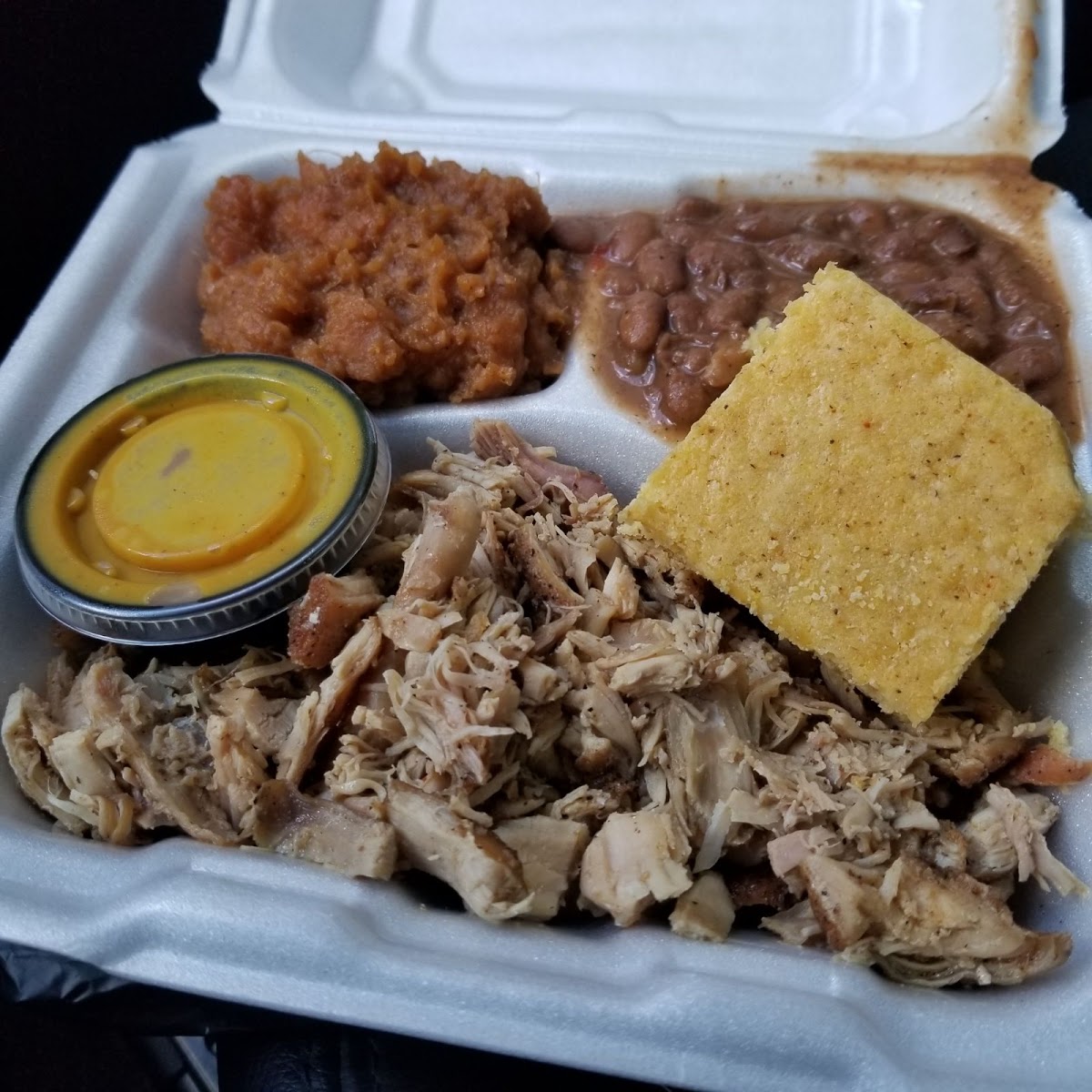 “ i got the pulled pork plate, with mac and cheese, greens and the jalapeno cheddar drop biscuit. the price was beyond reasonable for all the food i ordered and i got a cold drink on top of that as well. the mac and cheese was made fresh to order, the greens were beautifully seasoned and well cooked. the pork was so flavorful and soft, i didn’t need the carolina gold bbq sauce at all. it was delicious on its own. this is a family run restaurant making everything in house, it’s fresh, overly tasty, and absolutely everything you can want. blessed to have found them, and grateful they’re local so i can keep coming back ”
